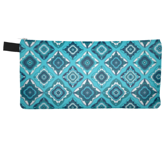 Blue Diamond Medallions Pencil Case, Small Polyester Zipper Bag